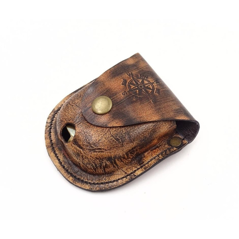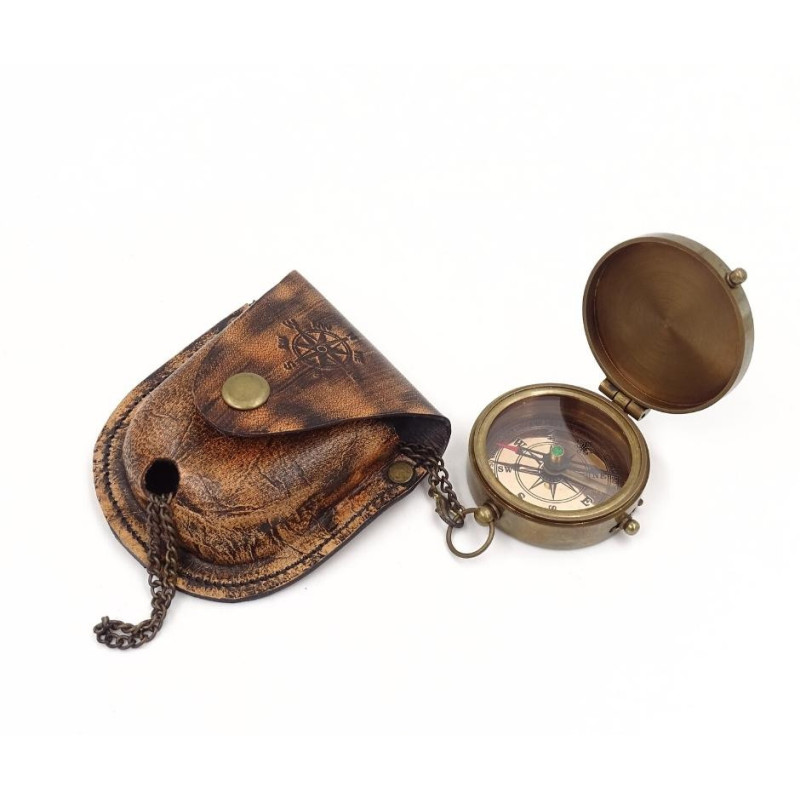 Užrakinamas žalvarinis kompasas su grandinėle odiniame dėkle