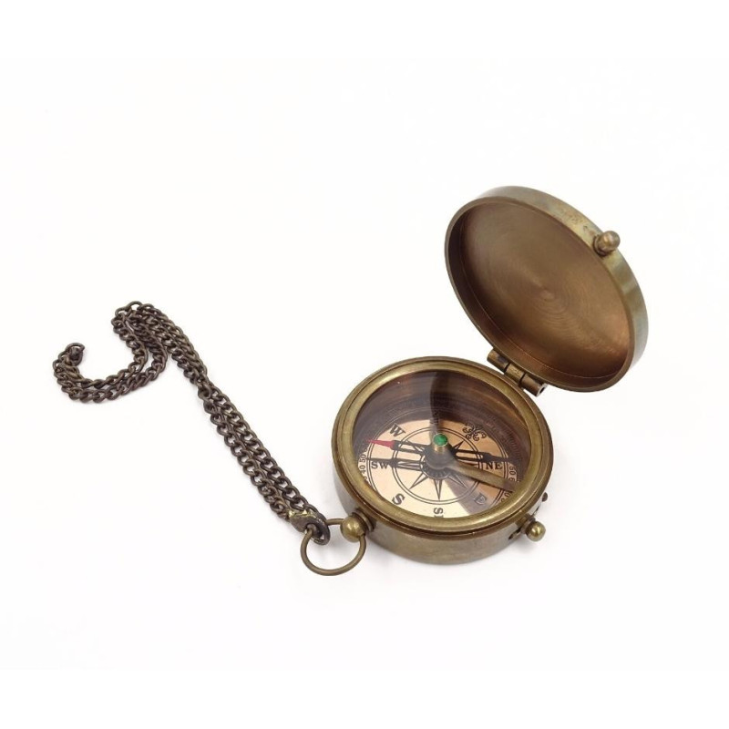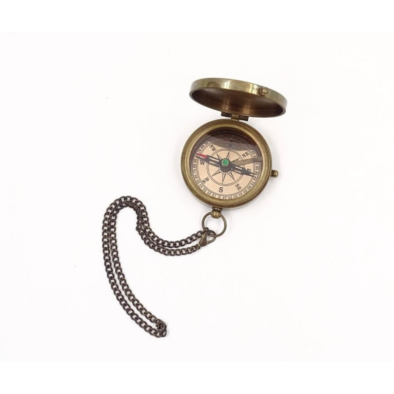 Kompaktiškas, tvirtas ir patikimas – šis žalvarinis užrakinamas kompasas sukurtas kelionėms ir nuotykiams gamtoje. Jį lengva nešiotis dėl patogios grandinėlės, o komplekte esantis odinis dėklas apsaugo nuo įbrėžimų bei suteikia papildomos estetikos.