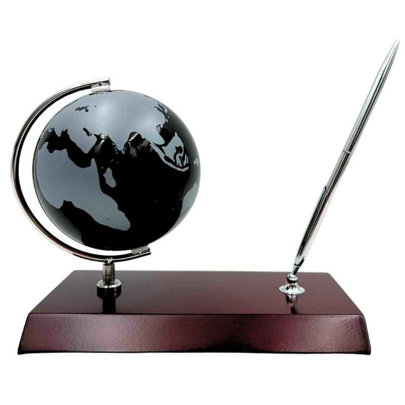 Rinkinyje esantis rašiklio laikiklis padeda išlaikyti darbo stalą tvarkingą, o dekoratyvinis gaublys primena apie žingeidumą, keliones ir naujas idėjas. Tai puikus pasirinkimas biurui, darbo kambariui, konferencijų salei ar namų darbo erdvei.